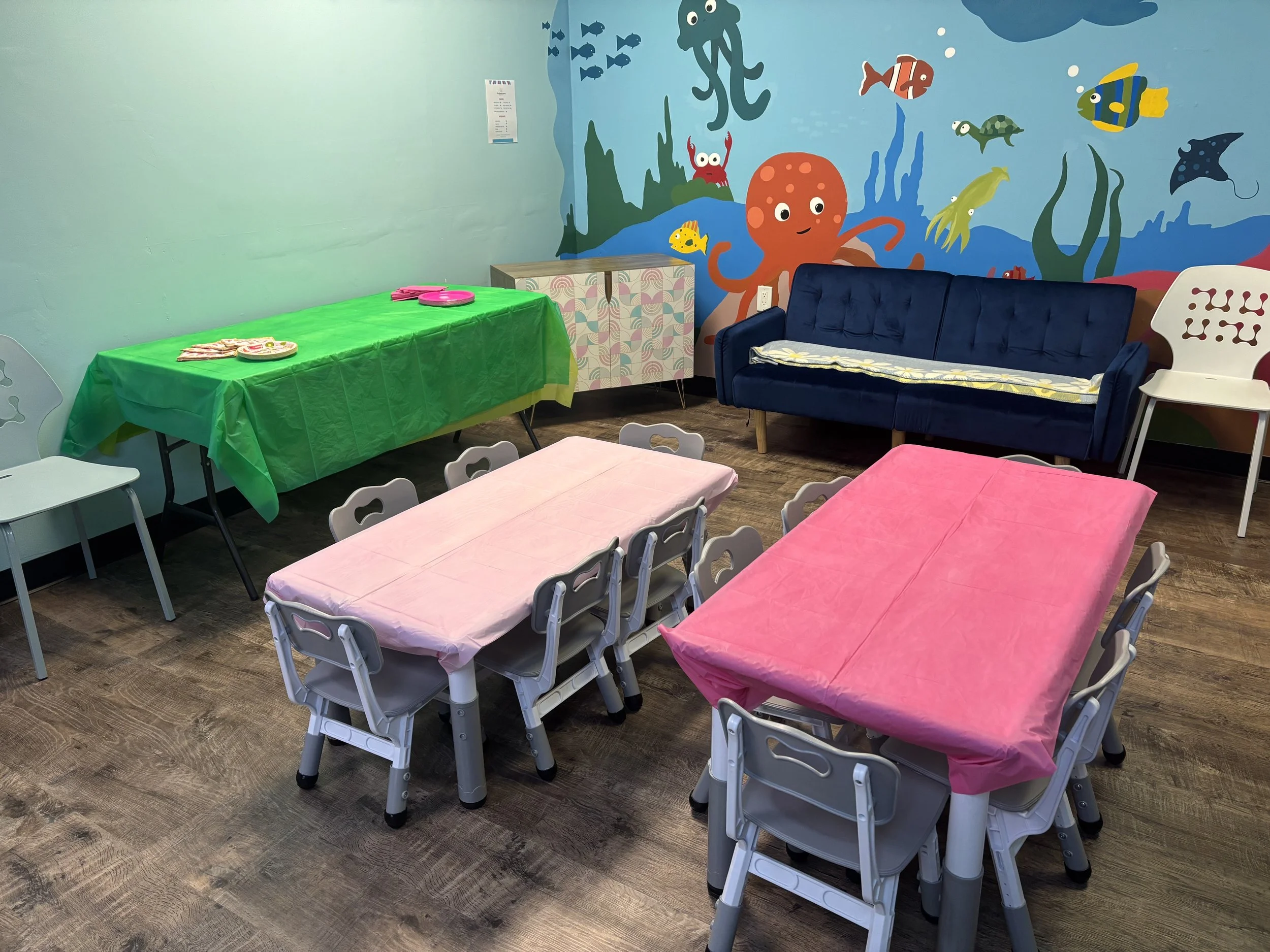 Option 1: $350 for weekends, $200 for weekdays and includes the use of the private playroom and our assistance during the party as well as cleanup! We also provide up to two solid colors for tablecloths, plates, napkins, cups and plasticware. You can bring any food/drink of your choice as well as any temporary decorations you would like! *No peanut products